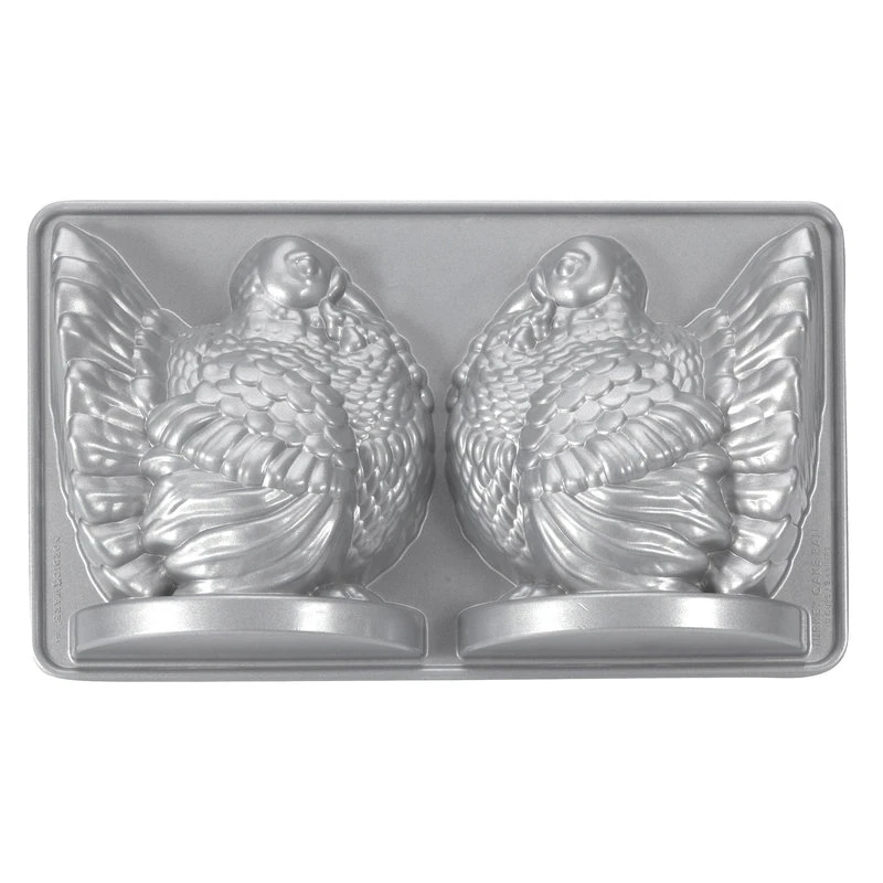 Create a beautiful and uniquely shaped cake with this turkey cake pan from Nordic Ware. This cake pan features incredible detail that is sure to make the fall season special for every family. The pan also has a nonstick coating which enables you to get the whole cake out safely with out any damage to the design. This pan is backed by a manufacturer’s limited lifetime warranty and is made in the USA.