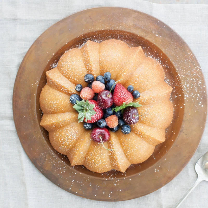 Bake beautiful, elegant bundt cakes with little effort using this pan from Nordic Ware. Featuring a large capacity, this aluminum pan is the perfect size. This bundt form is non-stick coated, so clean up will be easy and effortless. It is backed by a 10-year warranty from Nordic Ware, proudly made in the USA.