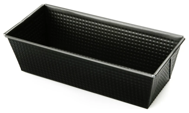 Bake banana bread and more with this Norpro bread pan. Made of heavy gauge steel with a nonstick coating, the pan is corrugated for extra rigidity, and it features square folded corners and tapered sides. Perfect for meatloaf, baking bread, and desserts, this bread pan is a kitchen essential.