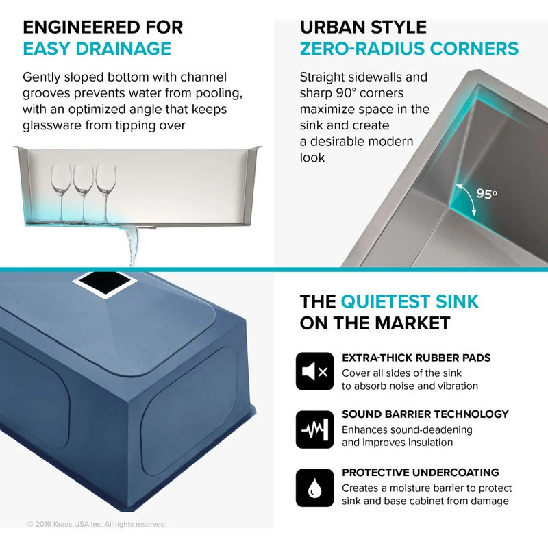 - NoiseDefend Soundproofing Technology: Features extra-thick pads covering over 80-percent of the sink and non-toxic undercoating for added insulation
