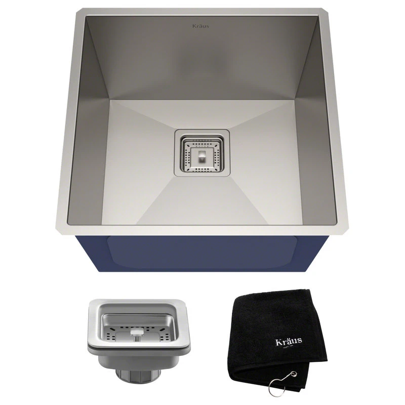 - FREE Accessories: Drain assembly with square strainer, premium Kraus kitchen towel