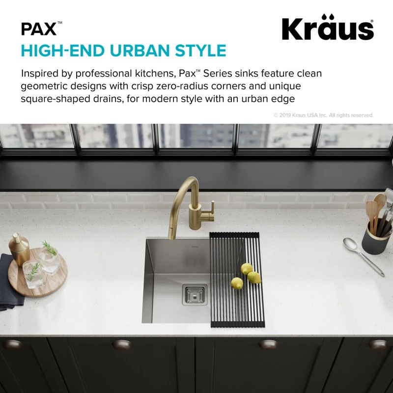 Create a high-end kitchen with the KRAUS Pax Series, featuring sleek modern designs with zero-radius corners. Wear-resistant satin finish offers a beautiful sheen, and easily wipes clean for minimal maintenance.