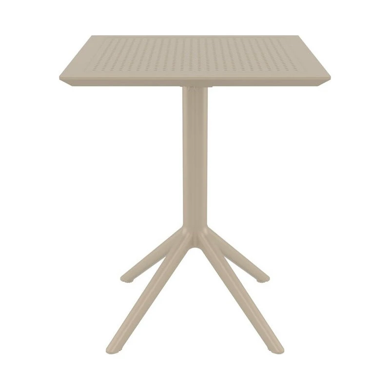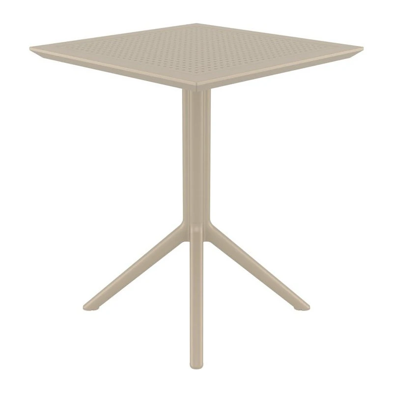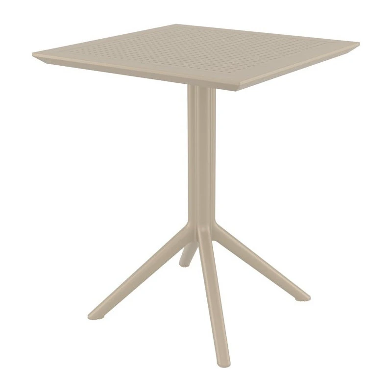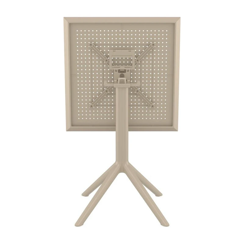 Pemberly Row 24 inch Square Dining Table with folding top. Resin top with the latest generation of air molding thermoplastic legs. For indoor and outdoor use. Both top and body are made of high quality polypropylene for durability and a stable posture. Table top has pinholes that helps with rainwater drainage and creates a modern look. One touch, easy folding. Extremely durable for outdoor environments. Table is perfect for balcony, pool, beach and heavy use areas. Resistant to suntan oils, chlorine and saltwater. UV protected. Can be disassembled. Perfect for cafes and restaurants.
