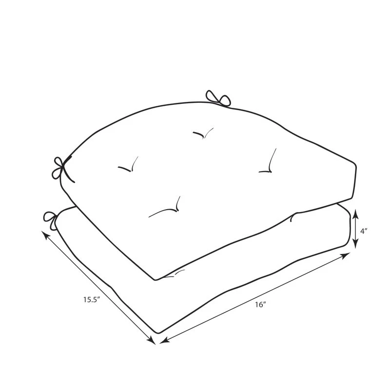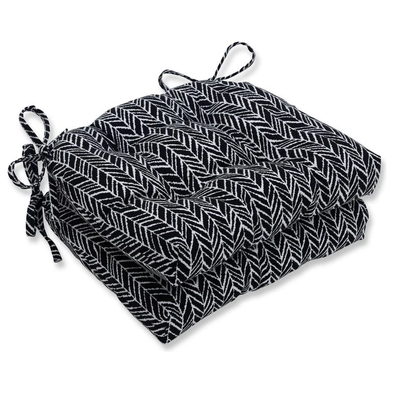 Inspired by the classic lines of a chevron, these geometric chair pads are a stylish choice for your seating area, indoors or outdoors. A bold, timeless black and soft white are printed on a durable textured fabric making this an essential addition to your home. These tufted chair pad cushions use a plush 100 percent polyester fill for ultimate comfort and feature 14″ chair pad ties to ensure a secure attachment to almost any chair. Lightly spot clean with mild detergent and cool water for easy maintenance.