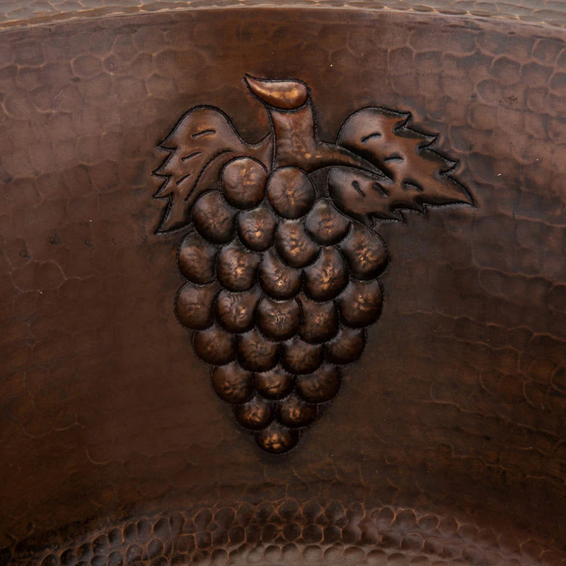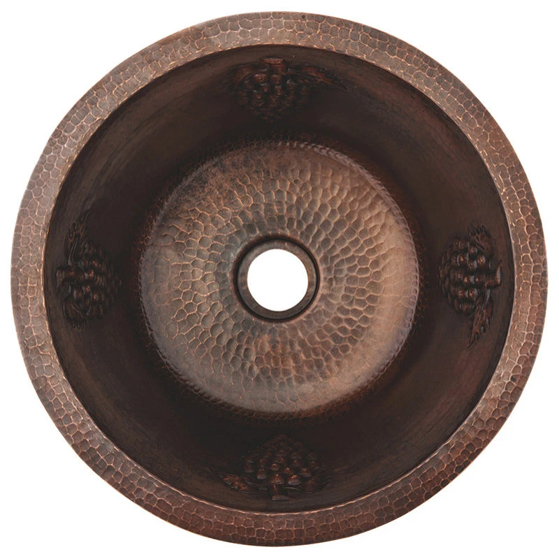 16″ Round Copper Bar Sink w/ Grapes and 2″ Drain Opening Features: