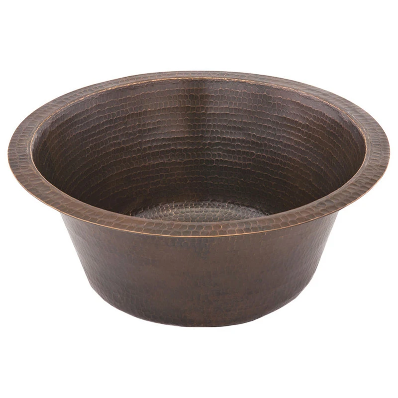 16″ Round Hammered Copper Prep Sink w/ 3.5″ Drain Opening Features: