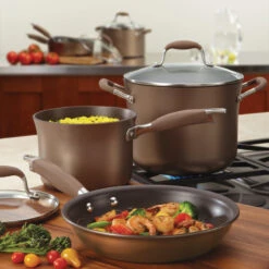 Bronze Hard-Anodized Nonstick 2-Quart Covered Straining Saucepan, Pour Spouts
