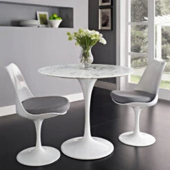 Lippa Round Artificial Marble Dining Table, White, 36″