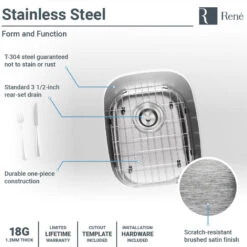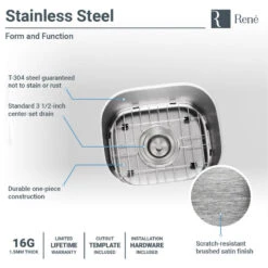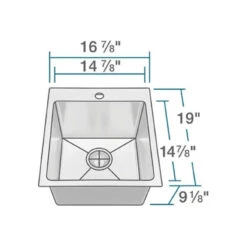 1717 Single Bowl 3/4″ Stainless Steel Sink, 16-Gauge, Sink Only