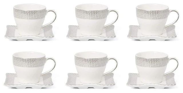 - Royalty Porcelain 12-pc “Silver Crocodile” Miniature Espresso Coffee Set for 6, 24K Gold-Plated, Superior Quality Bone China