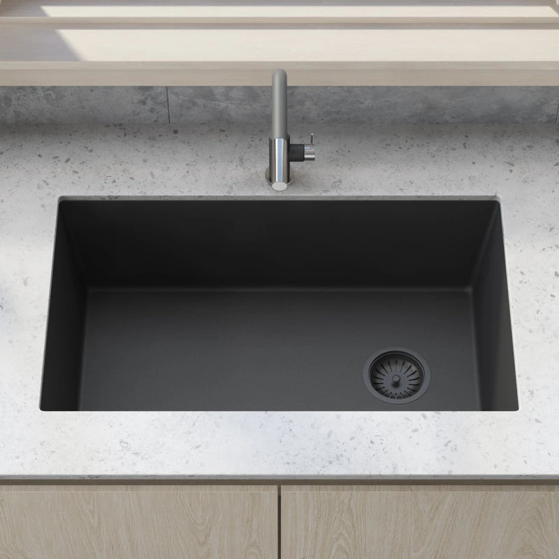 Constructed of composite granite – 80% crushed natural granite for extreme durability and strength. The remaining 20% is a proprietary resin that makes the sink completely non-porous and resistant to most household chemicals.