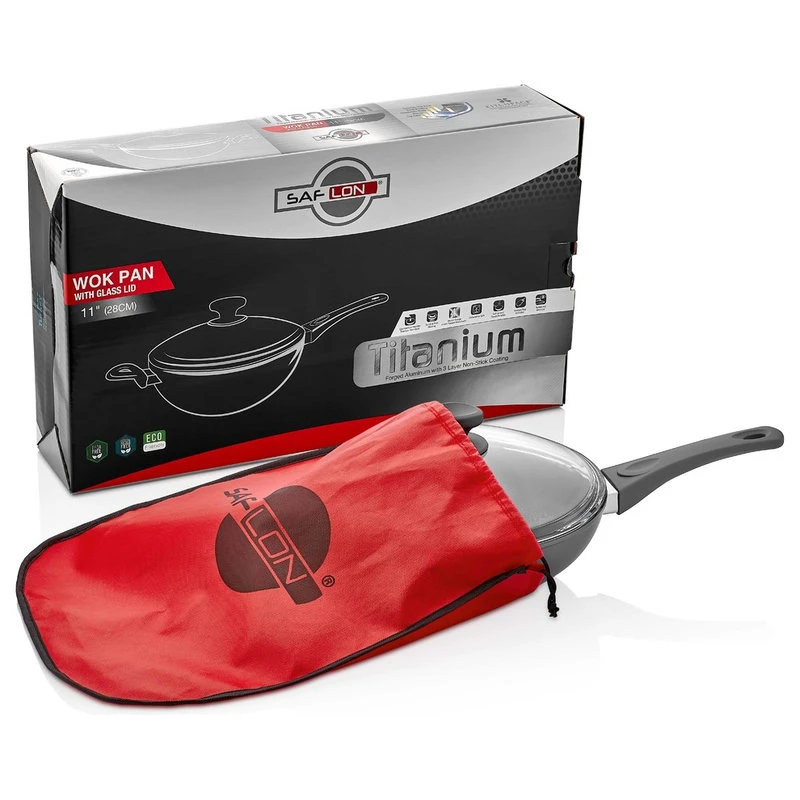 - ECO-FRIENDLY: The Saflon QuanTanium wok pan is dishwasher-safe and nonstick in addition to being PFOA-free, lead-free, and cadmium-free.