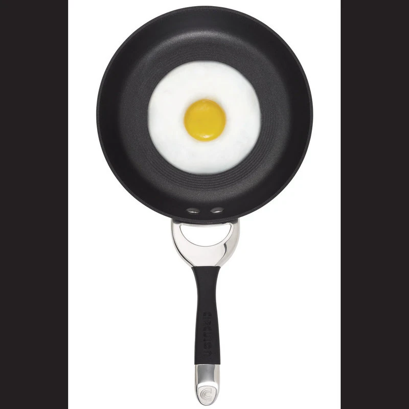 With the Circulon Symmetry Hard-Anodized Nonstick 10-Inch and 12-Inch French Skillets, quickly create nutritious individual meals or delicious side dishes. The skillets’ attractive exteriors add sophistication and style to any kitchen decor, and the heavy-duty hard-anodized aluminum construction is twice as hard as stainless steel for lasting durability. The French skillets’ metal utensil safe interiors feature the TOTAL Food Release System of circles to reduce surface abrasion, ideal when making Tuscan scrambled eggs or balsamic-glazed carrots. PFOA-free premium-quality advanced 3-layer nonstick offers easy cleanup both inside and out while delivering extraordinary food release. Rubberized stainless steel handles offer a comfortable grasp, making it easy to transfer either skillet into the oven. These skillets are oven safe to 400 Degrees, and can be cleaned in the dishwasher. This nonstick skillet set makes a great addition to all the pieces in the Circulon collections.