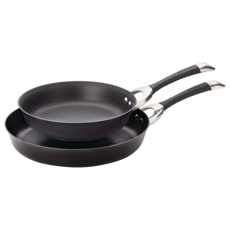 Side by side or one at a time, the Circulon Symmetry Hard-Anodized Nonstick 10-Inch and 12-Inch Skillets help deliver healthy cooking solutions with superior nonstick technology.Heavy-duty hard-anodized aluminum construction is twice as hard as stainless steel and provides lasting durability.