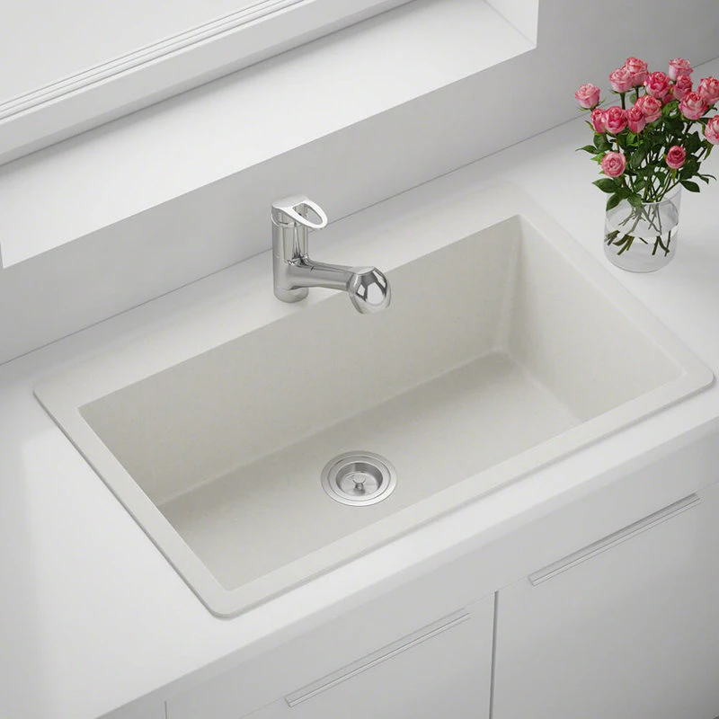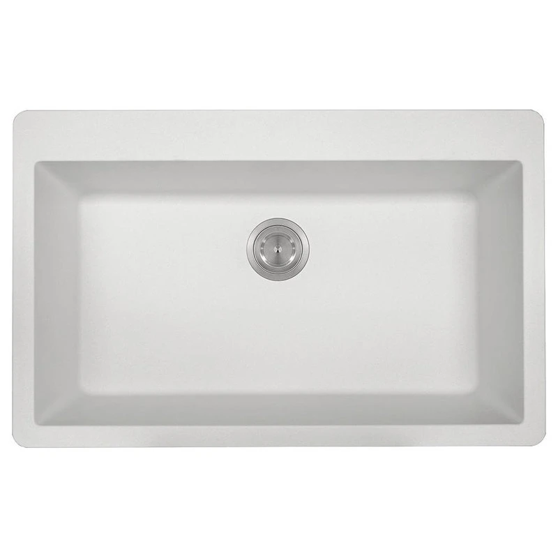 The MR Direct T848-White Quartz Granite sink is made from a material comprised of 80% Quartz and 20% Acrylic. The T848-White is stain and scratch-resistant and can resist heat up to 550. The smooth non-porous surface is easy to clean, leaving nowhere for bacteria to thrive. The overall dimensions of the sink are 36″ x 21″ x 9 1/4″ and a 36″ minimum cabinet size is required. The sink contains a 3 1/2″ offset drain and is available in multiple colors. As always, our Quartz Granite sinks are covered under a limited lifetime warranty for as long as you own the sink. Accessories are not included.
