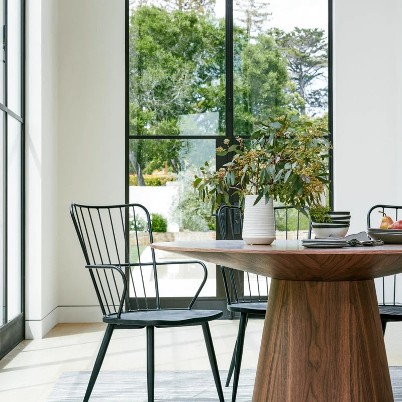 With its simple yet robust silhouette, the Garrett dining table easily blends into any space. The thick base provides a sturdy center of gravity to support its smooth round top. Comfortably fitting up to four chairs, this gorgeous table upgrades any ambiance with minimal effort. Pull up a seat for morning breakfast or brunch or intimate dinners with the ones you love most.