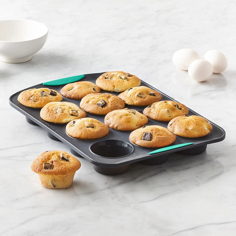 Bake a batch of fresh blueberry muffins for your coworkers in this muffin pan from Trudeau. It is made from grey silicone and has mint green accents at the handle for easy grip. The interior features steel for a stronger structure and it it microwave and oven safe up to 428 degrees Fahrenheit. This pan promotes even cooking and is perfect to transport cupcakes or muffins in. It is backed by a manufacturer’s lifetime warranty so you know this pan will stick around for a long time.