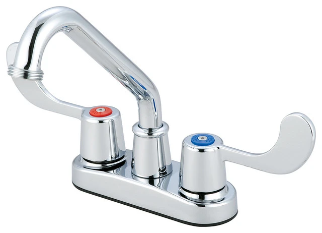 Two Handle Bar/Laundry Faucet ADA Wrist Blade Handles Hi-Tubular Spout Swivel 360_ 5-1/2″ Reach, 5-13/16″ From Deck to Aerator Washerless Cartridge Operation 2 or 3-Hole 4″ Installation With 1.5 GPM Flow Rate