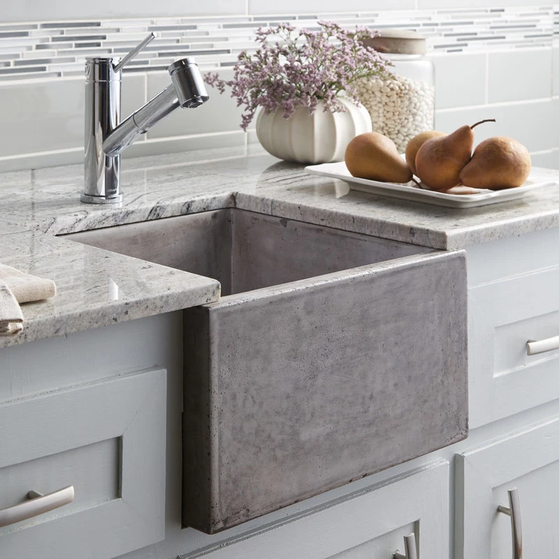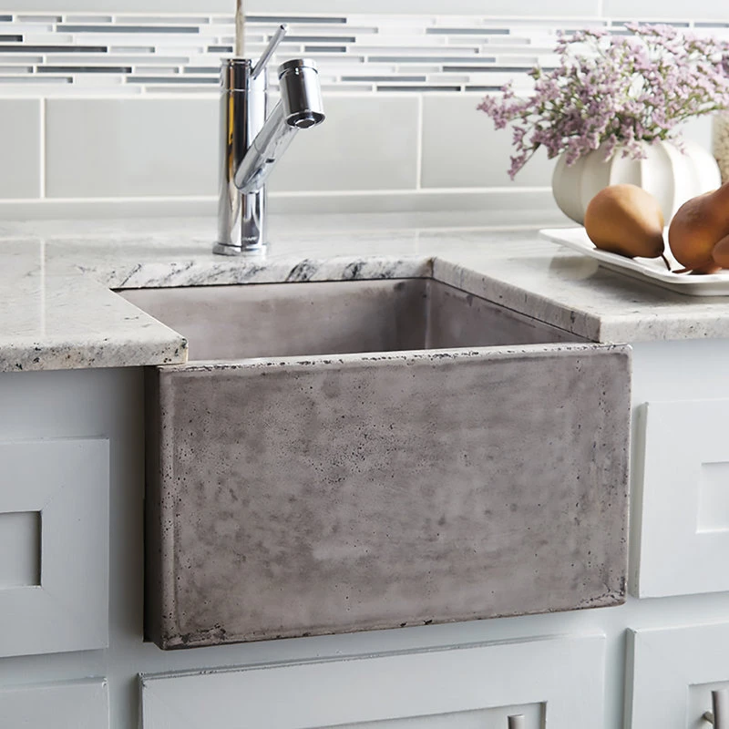 With its smooth surface and square design, the Ventana concrete sink is sophisticated, functional and low-maintenance. Whether showcasing the sink’s apron front, or installing it behind cabinetry, its clean lines and mottled finish add intriguing elegance to any bar or prep area. The Ventana is artisan-crafted of NativeStone: an innovative blend of cement and natural jute fiber. NativeStone delivers resilience for heavy-duty tasks, in conjunction with a refreshingly easy cleanup.