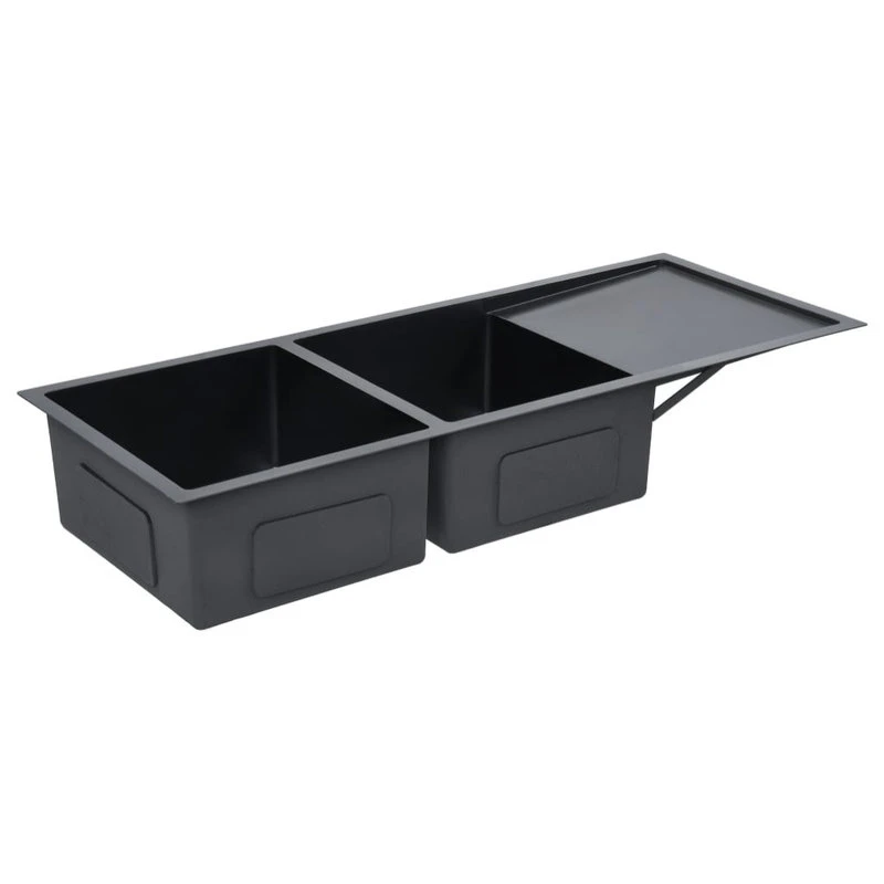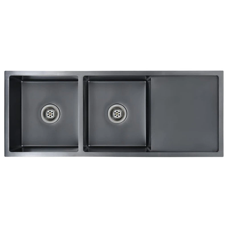 Enjoy the advantage of our high-end sink with clean contemporary designs. The bowls in silky smooth satin finish will ooze class and sophistication, which will fit any kitchen décor! Combing the best in function and design, this double bowl sink is crafted of high-graded handmade stainless steel in anti-condensation paint, lead free and corrosion resistant. It is sound proofing with the sound-reduction pads. The drainboard will come in very handy not only when washing dishes by hand but also as an extra place for cutting vegetables. Additionally, the bowls with a unique X-flume design facilitate quick flow, preventing standing water in the bottom of the basin. The premium waste strainers are included to separate waste and drain water smoothly. The kitchen sink is easy to assemble. The handmade stainless steel can be fitted as undermount, flush mount and drop in and you can have it in any way you prefer.