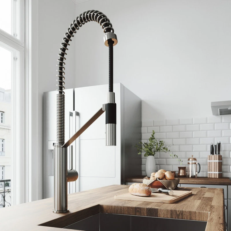 VIGO presents the Livingston magnetic kitchen faucet. Its integrated magnetic catch holds the spray head in place when it’s not used. The dual-action spray head with a 1.8 GPM flow rate conserves water without compromising performance. Livingston’s spray head supports a 360˚ swivel spout that can be conveniently used around any kitchen sink. The solid brass construction and a premium 7-layer plated coating resists wear and tear throughout its lifetime, making it a part of your home for years to come.