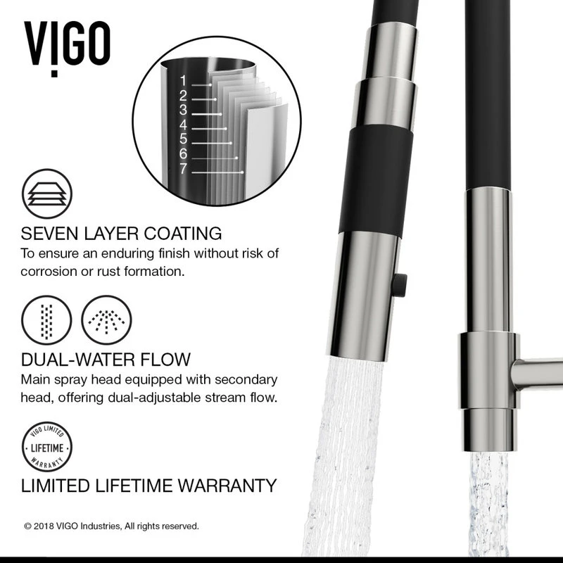 - All VIGO kitchen faucets are backed by a Limited Lifetime Warranty;