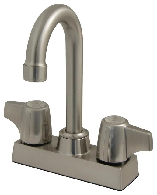 The 4″ centerset bar faucet is the perfect addition to your bar room or game room lavatory with its sleek body work and transitional look complementing other d�cor items. The twin canopy levers enables easy handling for water control. The faucet includes the Duraseal washerless valve and is made from solid brass for durability and reliance. Max 1.8 GPM/6.8 LPM Water Flow Rate At 60 PSI (ASME standard) Canopy handles with a 1/4-turn washerless cartridge Two-hole 4″ centerset installation with a 90-degree rotation water control mechanism J-spout has 3-1/2″ reach with a 7″ height