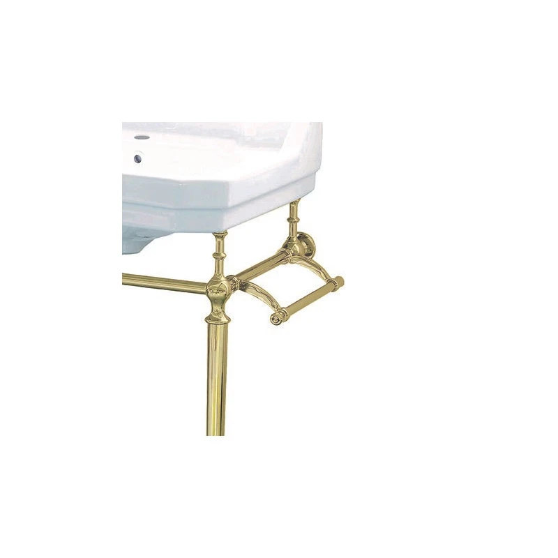 Victoriahaus Bathroom Console by Whitehaus Collection creates an elegant look to any décor. Crafted from the highest quality vitreous china available, this basin is as durable as it is luxurious. The smooth, seamless design of the English style basin has an integrated rectangular bowl, backsplash, dual soap ledges and a charming decorative trim. Offered in your choice of single or widespread faucet hole drilling, it has a center drain location and overflow. The exquisitely crafted Victoriahaus Console is wall mounted with beautifully detailed leg supports and a towel bar that can be installed on either side. Leg supports with the towel bar are offered in your choice of four finishes: Polished Chrome, Brushed Nickel, Polished Nickel, or Polished Brass to enhance your ideal bathroom design.